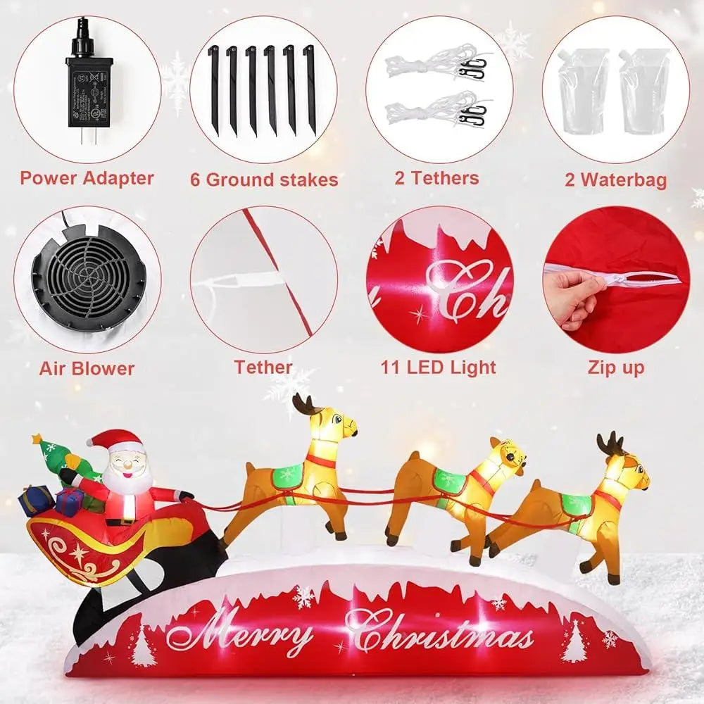 10 FT Christmas Inflatables Santa Sleigh with Reindeer LED Lights Outdoor Yard Decor Holiday Inflatable Christmas Decorations
