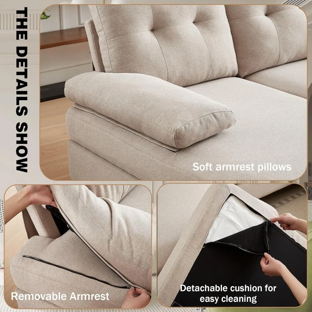 - Superior Comfort: Made of breathable skin-friendly fabric, offers a soft and natural touch when sitting or lying on this sofa. Features high-density sponge seat cushions that provides excellent support and resilience ensuring a cozy experience. Polyester Fabric does not puckering and ensure long-term use.