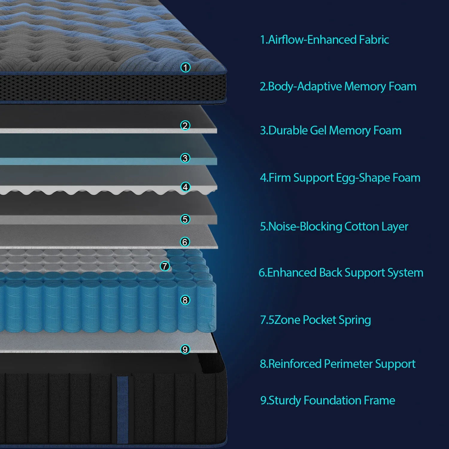 12"Gel Memory Foam Hybrid Pocket Spring Mattress Twin Full Queen King Bed Mattress In A Box, Medium Firm Motion Isolation