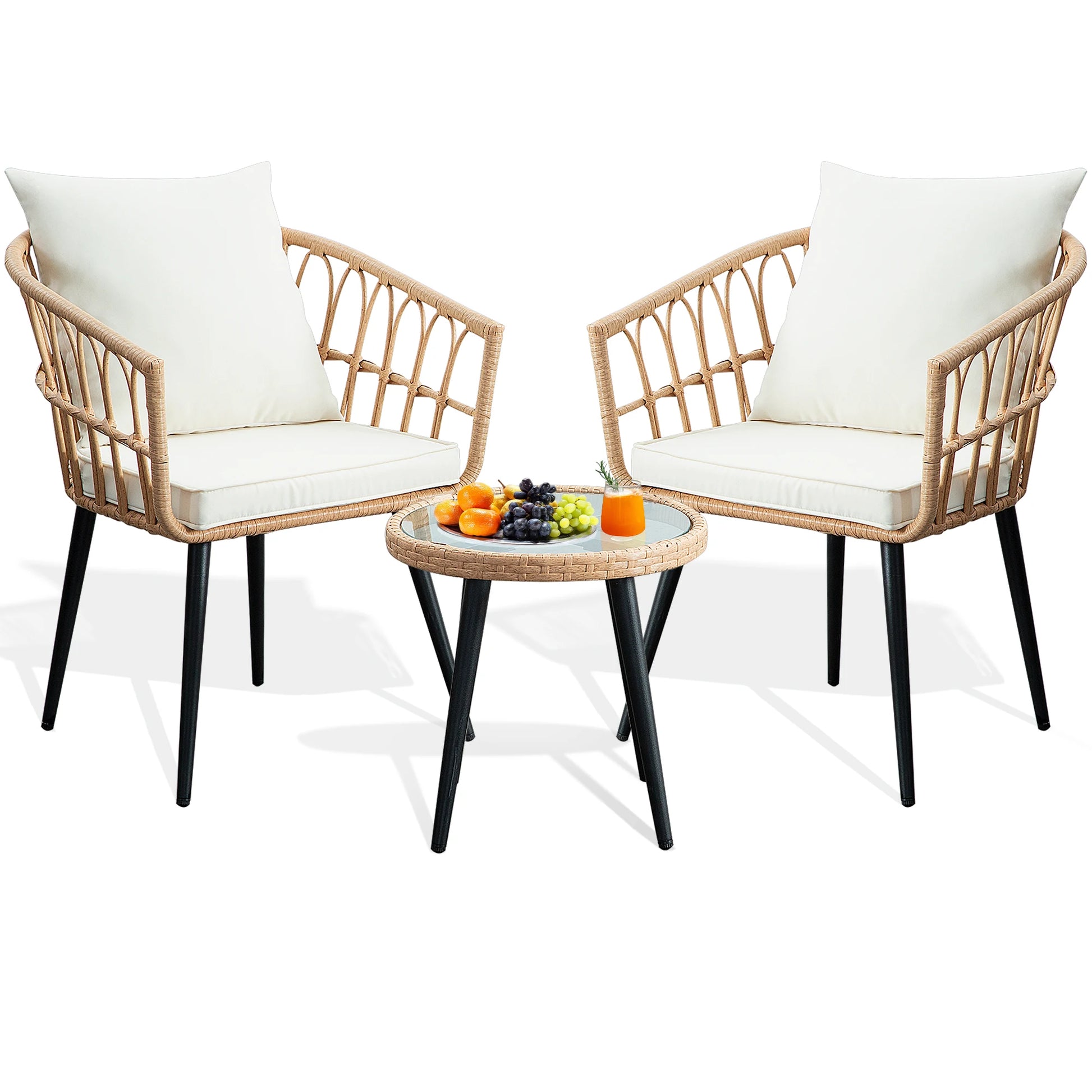 3 Piece Patio Porch Furniture Sets - Outdoor Wicker Chairs Bistro Set w/Cushions & Table for Balcony Lawn Pool Backyard
