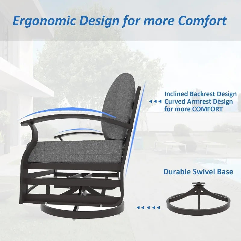360 DEGREE SWIVEL & ROCKING SOFAS: Our all-aluminum outdoor furniture set includes 2 swivel rocking sofas. You can rock back and forth or swivel 360° while listening to your favorite music or watching the beautiful sunset and enjoy your own leisure time.