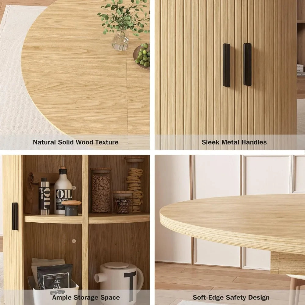 【Extendable Dining Table】 Our tabletop features a smooth-extending design, adjusting from 43.31" to 59.06" to comfortably seat 4-6 people. When not in use, the extension board tucks neatly under the tabletop—no more struggling to store bulky extra pieces. The stable mechanism ensures no wobbling, solving the "too small for parties, too big for daily use" dilemma. 【Spacious Storage Base】 The base houses 8 compartments, offering far more organized space than typical single-shelf designs. Store tablecloths, placemats, napkins, small serving bowls, or even utensils—each item has its own spot, eliminating the need to rummage through clutter. The fluted slide doors keep contents dust-free with a sleek, functional design. 【Solid Compacted Wood Top】 Crafted from high-density MDF, the tabletop boasts a smooth surface that resists scratches from utensils and daily use—no more worrying about kids’ messy meals or accidental scrapes. Its solid construction feels sturdy under heavy dishes, while the sleek finish adds a polished look to any dining space—practical for busy households and easy to maintain. 【Multi-Functional Design】 This table eliminates the need for a separate storage cabinet. The fluted base adds visual lightness while hiding compartments, keeping your dining area open and uncluttered. Its modern-rustic finish pairs with farmhouses, industrial, or casual styles—more versatile than bulkier storage tables, and with extra space to tuck away dining essentials. 【Effortless Hosting】 The seamless extension mechanism transforms your everyday table into an instant entertaining space in seconds—just pull and lock. The generous 59" setting comfortably fits six adults, while the hidden storage keeps serving platters and linens within arm’s reach. From weeknight dinners to holiday feasts, everything stays effortlessly organized.