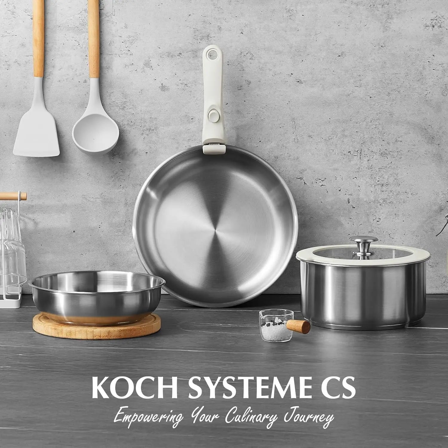 Effortless Versatility: The KOCH SYSTEME CS pots and pans set with detachable handles offers unparalleled flexibility, easily transitioning from stove to oven, grill, fridge, and even the dining table with just a simple click.Whether you're preparing meals, storing leftovers, or serving directly at the table, this set is the perfect combination of practicality and ease.