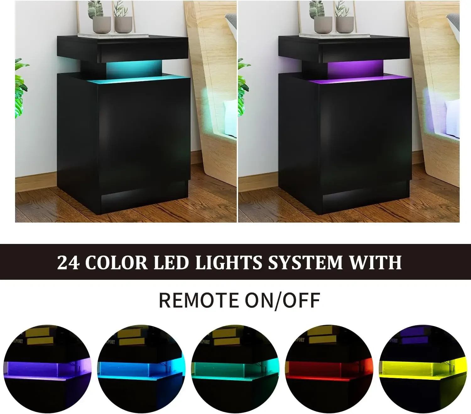 - 【Adjustable Light】These led nightstands offer adjustable brightness levels for the LED lights, allowing you to customize the lighting to suit your preferences or activities. Whether you need a soft, ambient glow or a brighter light for reading, you can easily adjust the brightness with the remote.