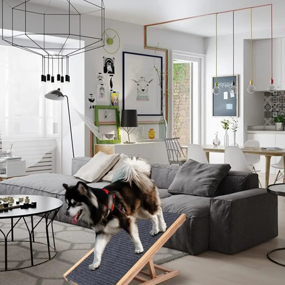 Durable and Long-lasting: This ramp is made of sturdy wood and equipped with tough screw fasteners, providing heavy-duty support and maximum durability. It can hold up to 50kg/110lbs. The high-quality carpet is comfortable and scratch-resistant. The carpet surface has grooves, making it ideal for small, medium, elderly, or mobility-challenged pets, relieving pressure on their paws and joints.