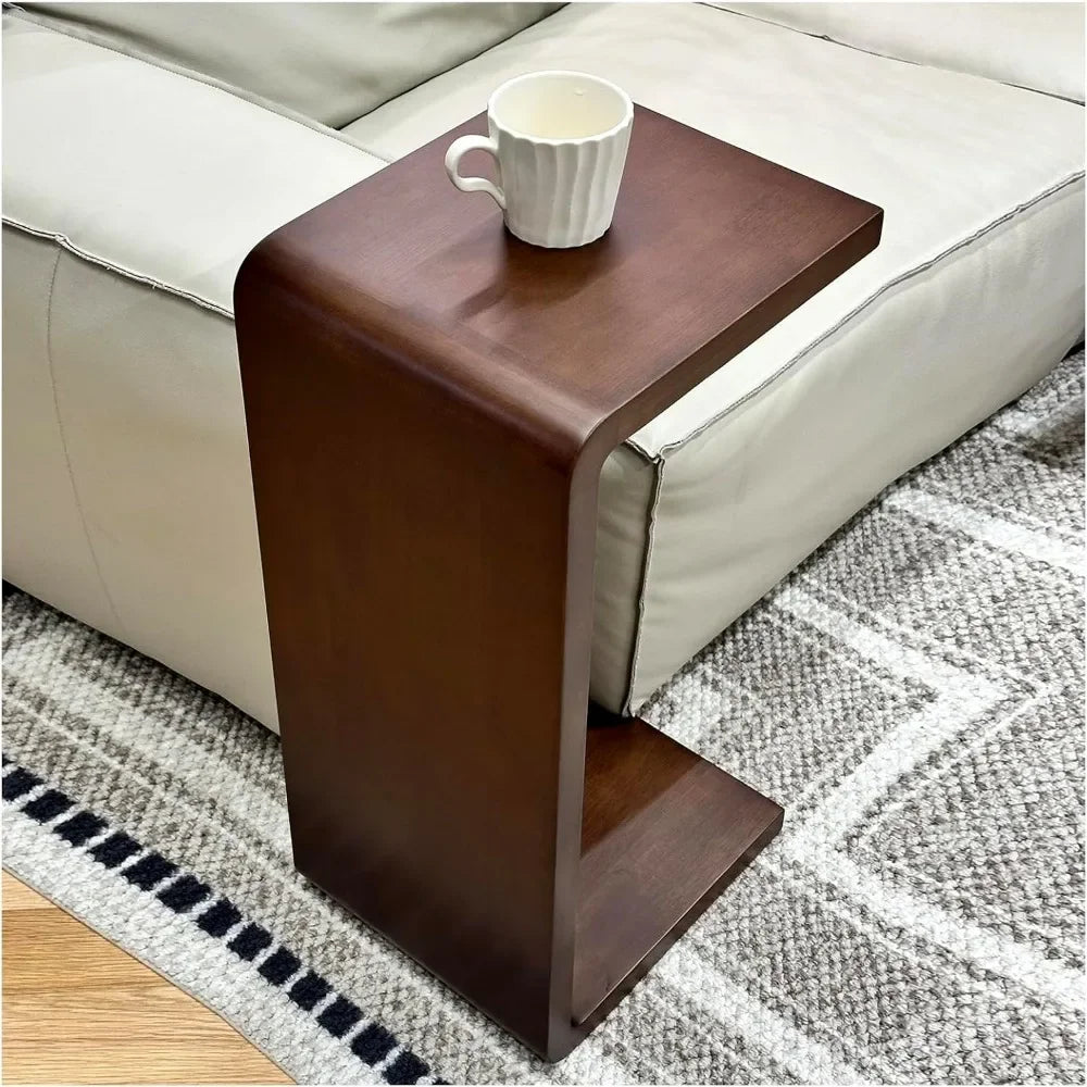 Solid Wood End Table For Couch C Shaped Mini Sofa Side Table For Small Narrow Spaces Wooden Nightstand For Living Room Bedroom