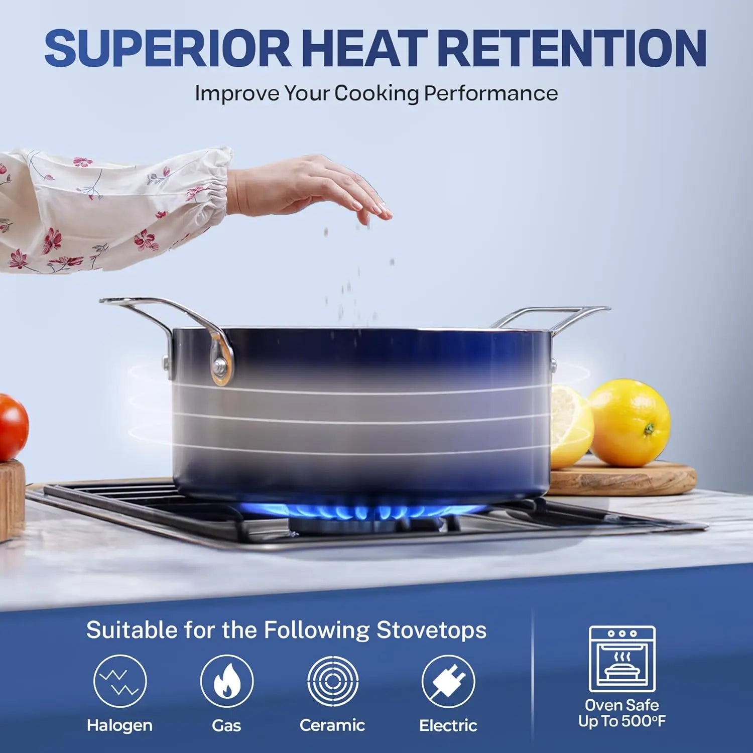 - Stovetop & Oven Safe: Compatible with gas, glass cooktops & oven safe up to a sizzling up to 500° Fahrenheit, lids included!