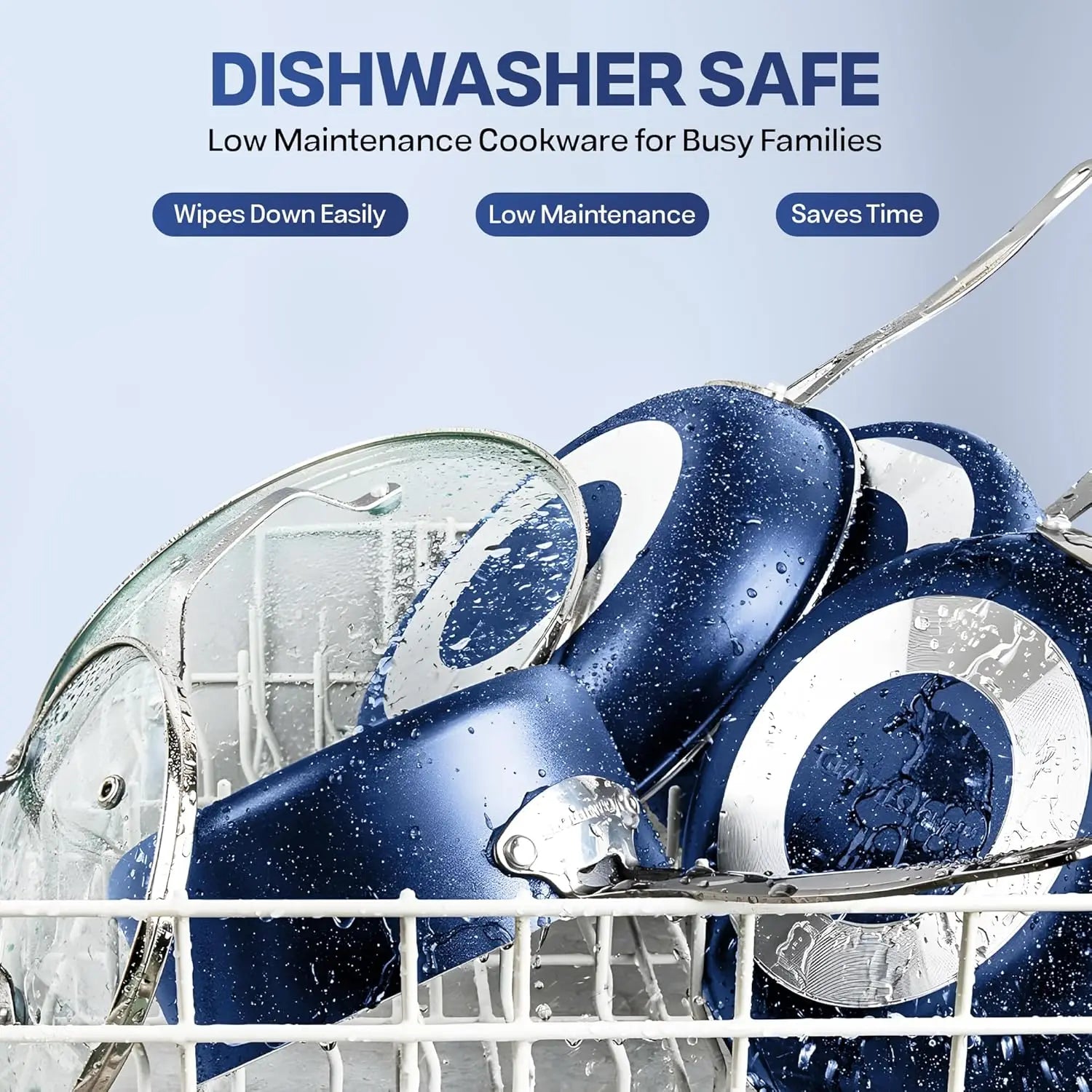 - Effortless Cleanup, Dishwasher Safe: Spend less time with cleanup! After all the cooking and prepping is done, place cookware in the dishwasher for quick and easy cleanup.