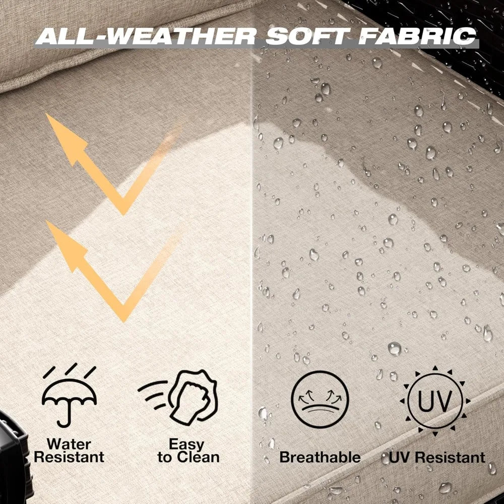 - Comfy Thick Cushion: Upgraded cushions are all made of high density sponge with 4 inches, thick sponge seat cushions and soft back cushions gives you comfortable support. The cushion cover is made from olefin fabric, which is breathable, UV-resistant, and waterproof. It features a zipper on the side for easy removal and cleaning