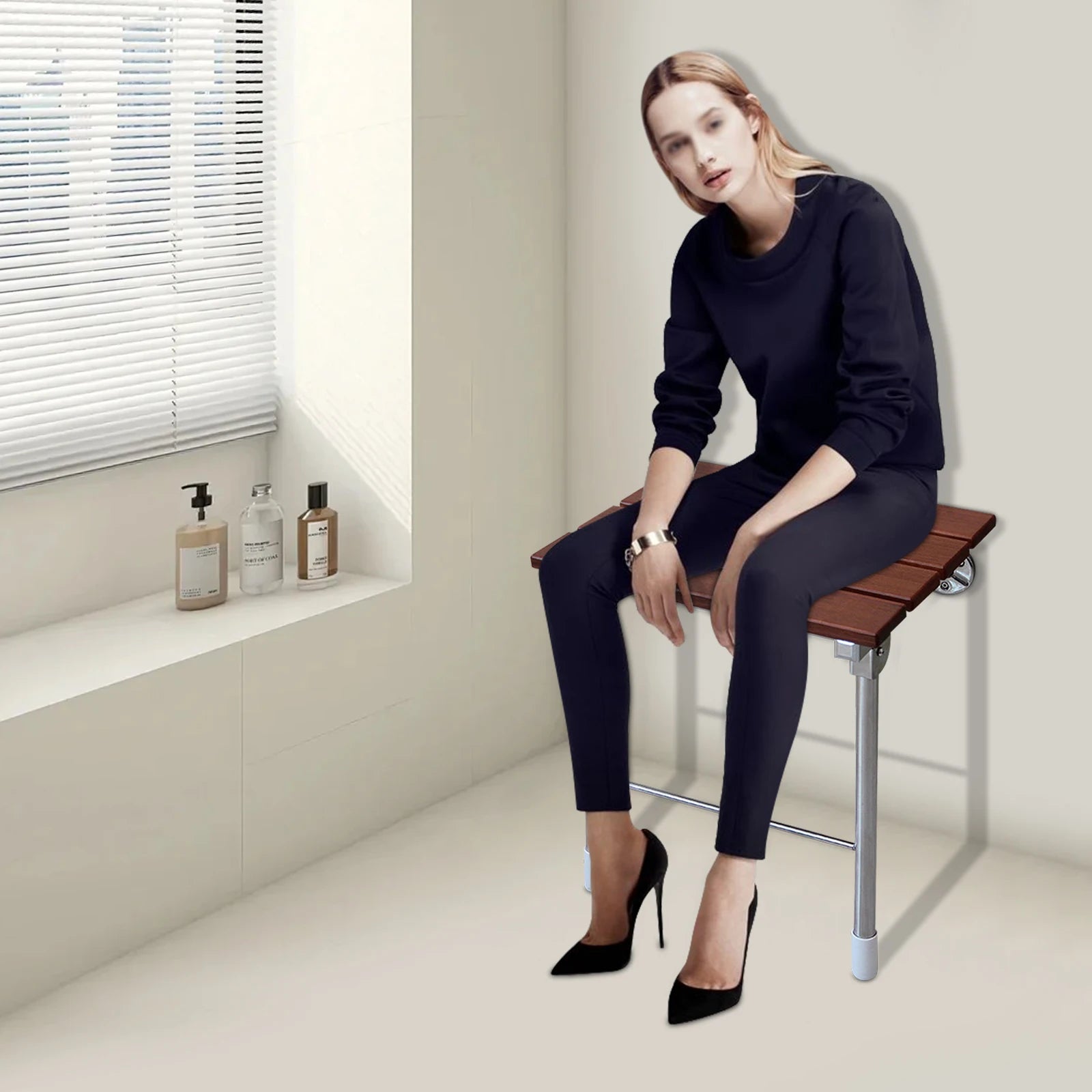 Wooden Wall Mounted Shower Chair, Folding Bathroom Shower Seat